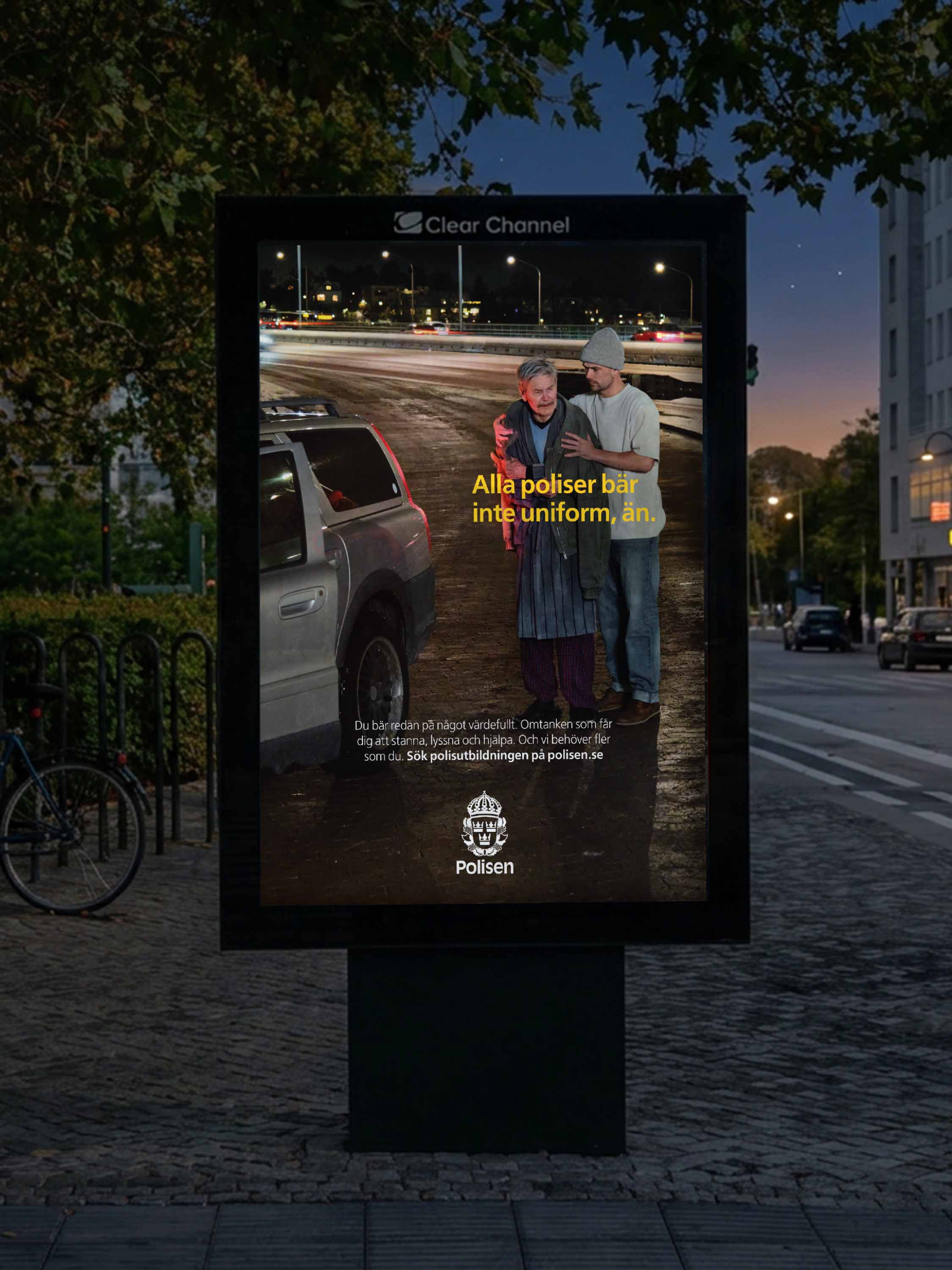 Instead of focusing on the traditional representation of the job such as police cars and sirens, we focused on ordinary people in everyday situations where they demonstrate the qualities needed in the police work. Like helping others, listening, stepping in and taking responsibility. Because all police officers don’t wear a uniform, yet. With a big integrated campaign and bespoke media solutions, Swedish Police Authority reminded people that they might just be the perfect match to help serve the community.